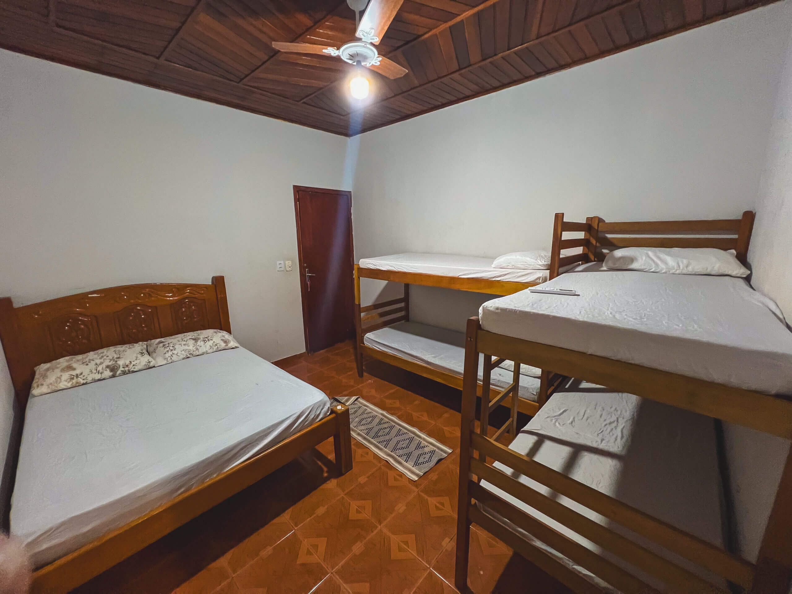 Com espírito selvagem e aconchegante, a Toca do Lobo é perfeita para quem quer se reunir em grupo e aproveitar momentos de descanso em meio à natureza. Inspirada na força e união da alcateia, essa suíte acomoda confortavelmente até 6 pessoas, com 1 cama de casal e 2 beliches. Equipada com ar-condicionado, frigobar, TV, Wifi, banheiro privativo e enxoval completo de cama e banho. Aqui, cada detalhe convida ao conforto — e toda a estrutura do Rancho está à sua disposição para viver dias inesquecíveis.