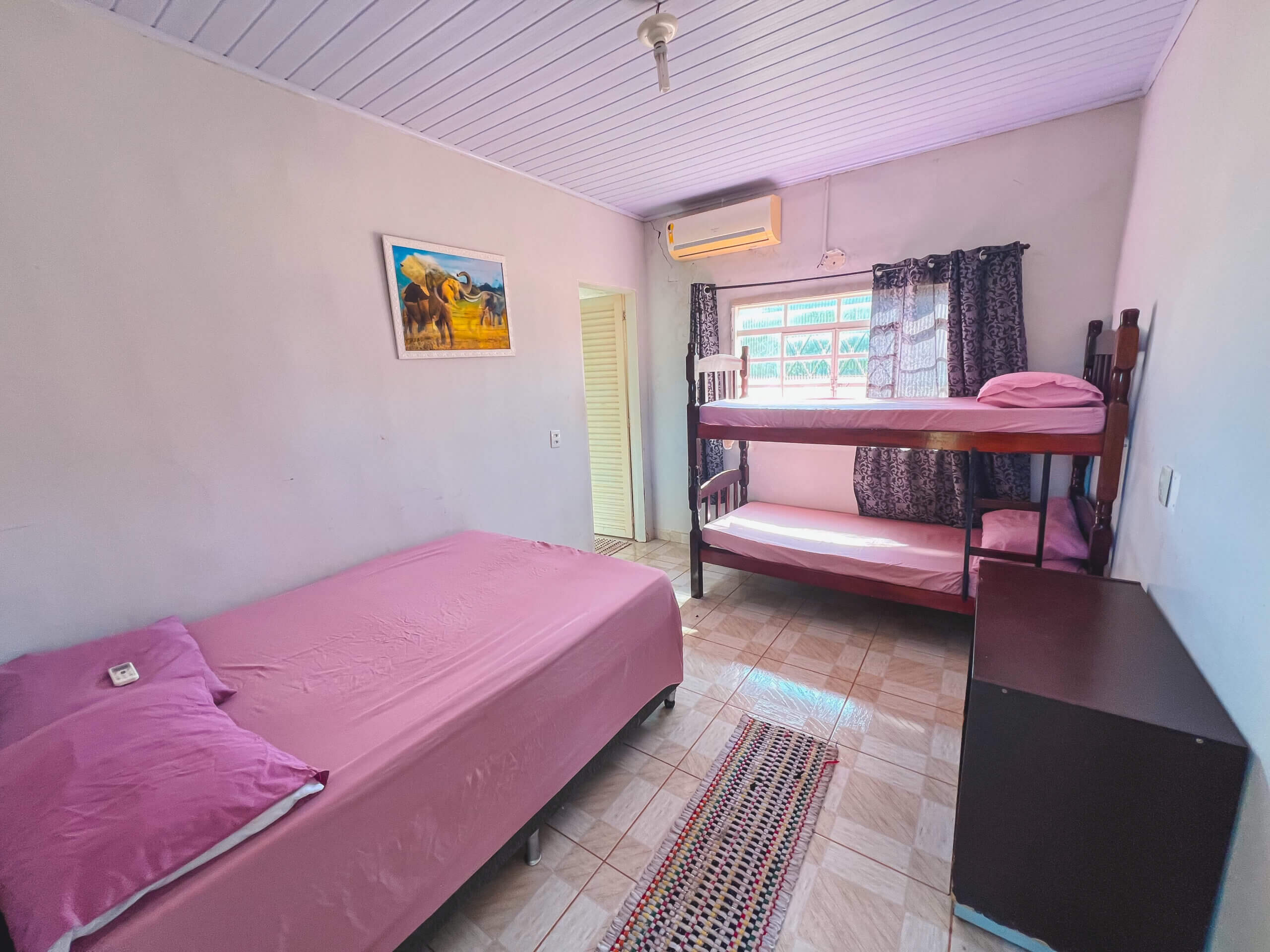 Colorido, alegre e acolhedor — o Ninho da Arara é perfeito para quem deseja compartilhar momentos especiais em grupo. Inspirado na beleza vibrante das araras, esse quarto acomoda até 4 pessoas, com 1 camas de casal e 1 beliches. Equipada com ar-condicionado, frigobar, TV, Wifi, banheiro privativo e enxoval completo de cama e banho, oferece um ambiente confortável para relaxar e celebrar. Ao se hospedar aqui, você garante acesso exclusivo a toda a estrutura do Rancho Baitaca, proporcionando uma experiência completa e inesquecível.
