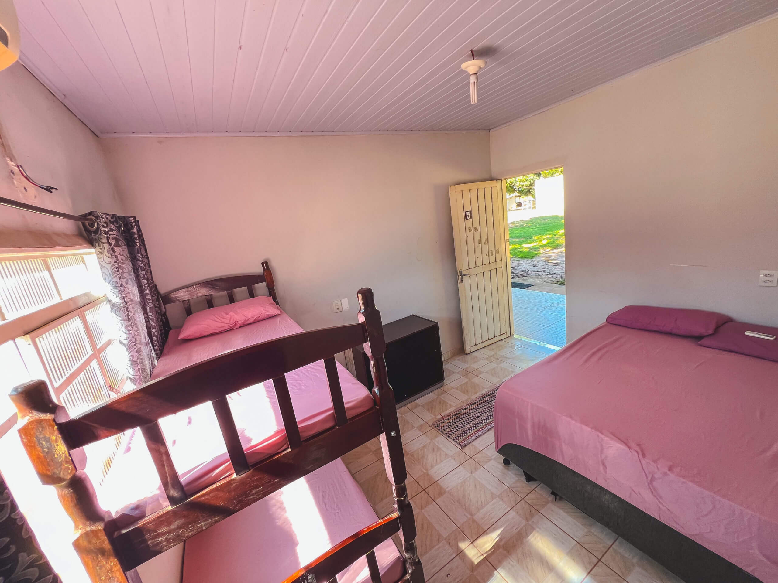 cama-casal, beliche, ar-condicionado, banheiro-privativo, frigobar, wifi, roupas-de-cama-e-banho, vista-jardim